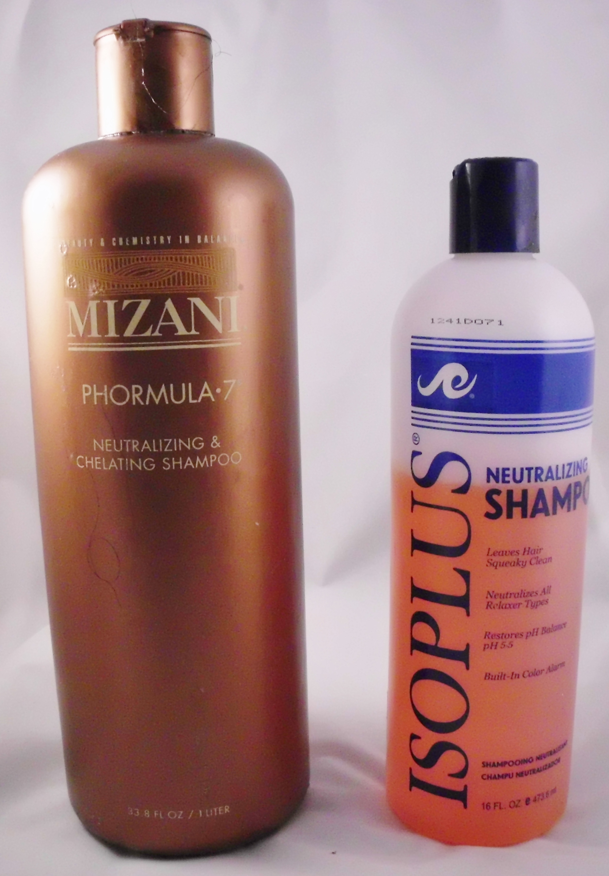 - My neutralizing process is the longest part of the entire process. I neutralize a total of four times. The first time, I used the Mizani Phormula-7. I work that into a lather and let it sit on my hair for 10 mins. Rinse and repeat with the same shampoo. Next, I mix ½ C of vinegar with water and pour that on my hair. I let it sit for 5 mins before rinsing. Last, I shampoo with the Isoplus neutralizing shampoo because it has a color signal. I know after the vinegar mixture I should be fine, but I rather be safe.