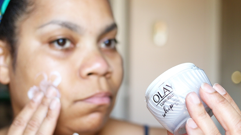 I have to say that I love the formula. It’s lighter than the Olay Regenerist moisturizer that I use during the winter. The Olay Whips line is just as awesome and is packed full of vitamins that leave my skin looking healthy and moisturized, without the shine. Also, the Olay Whips with SPF blends into my skin without leaving me with an odd gray or white case. It’s perfect for deeper tones too and doesn’t leave a sticky or oily feel either.